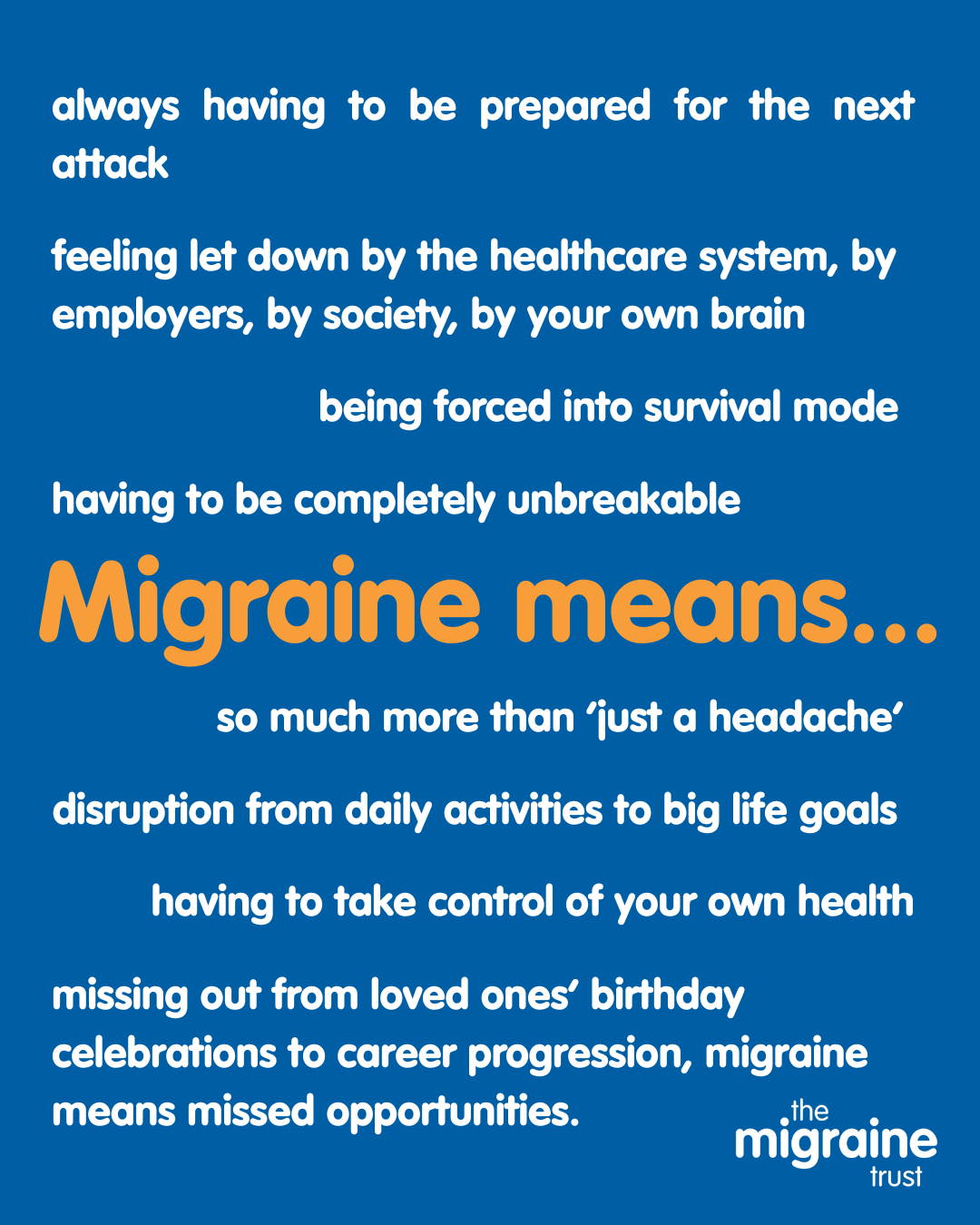 Download and share our social media graphics to join the conversation online. Don’t forget to tag us and to use #MigraineMeans